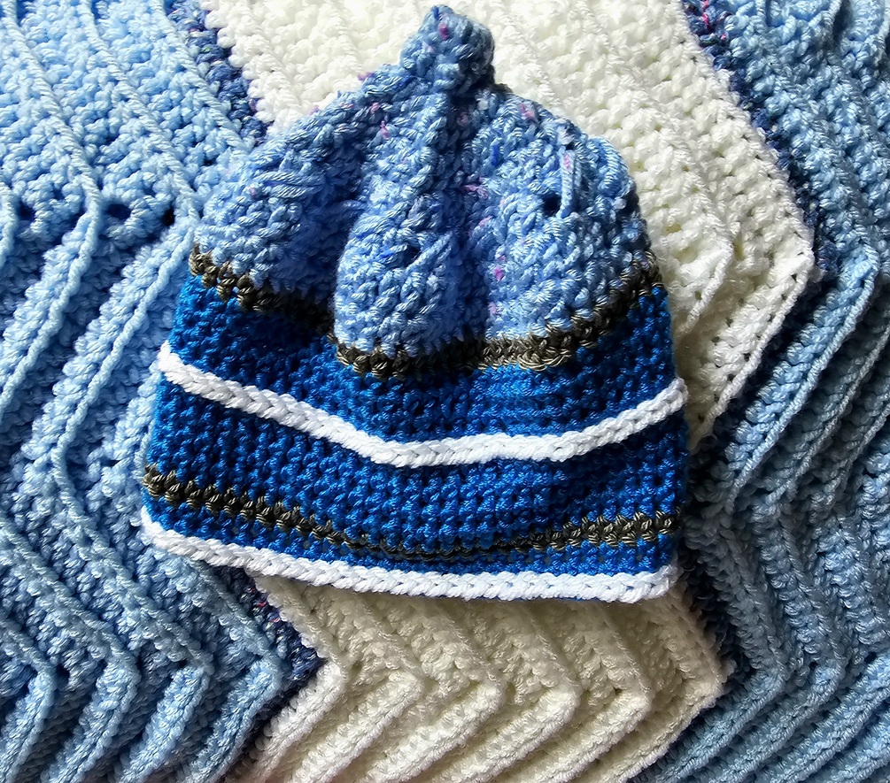 Zig and zag and cover your bundle of joy with this comfy cozy blanket. Good for home and outings. Ringlet details along edges. Appreciated by all ages.